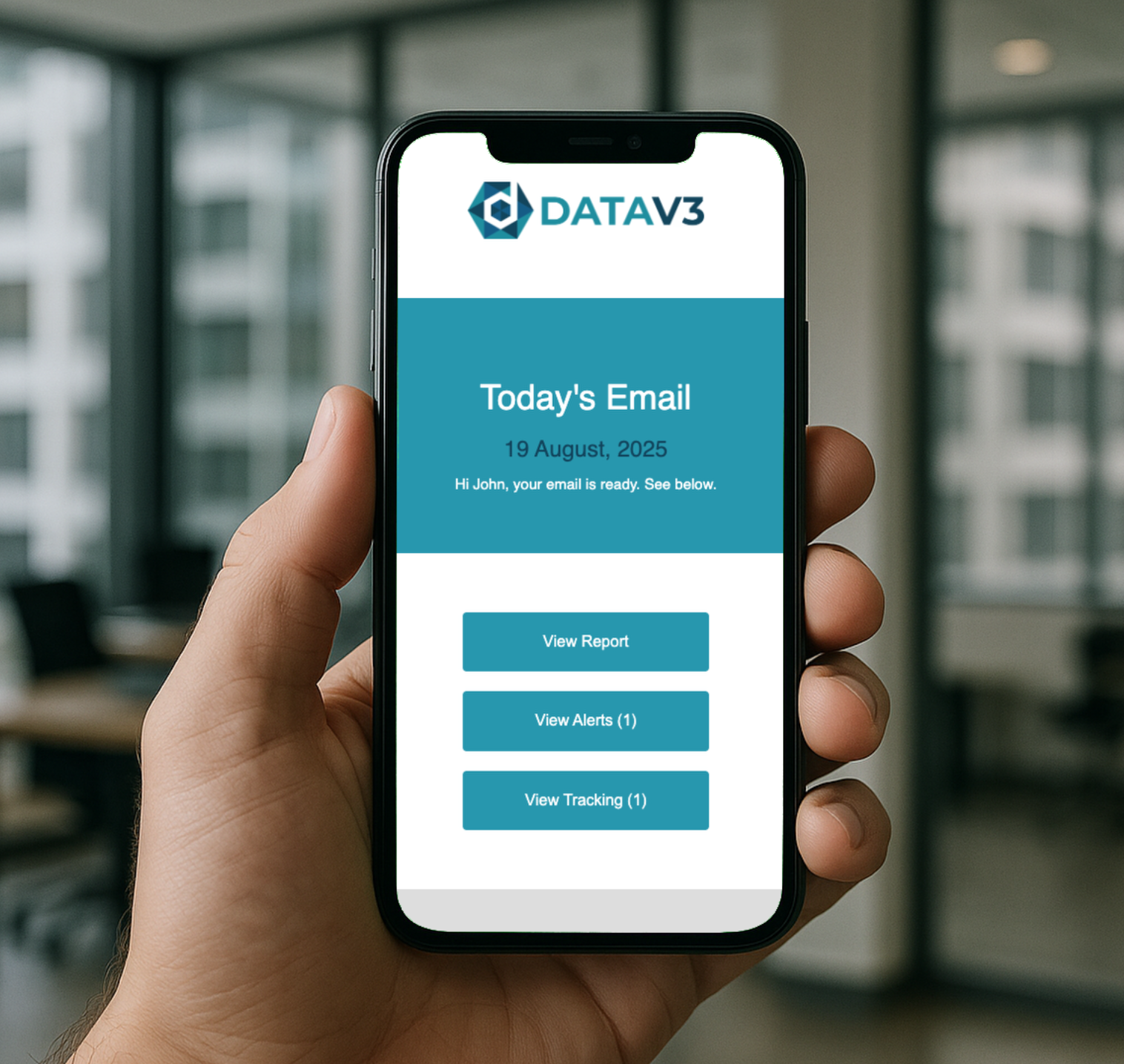 Receive an alert for any terms you have. DATAV3 reads everything it collects, including documents and adds any matches to your daily email.