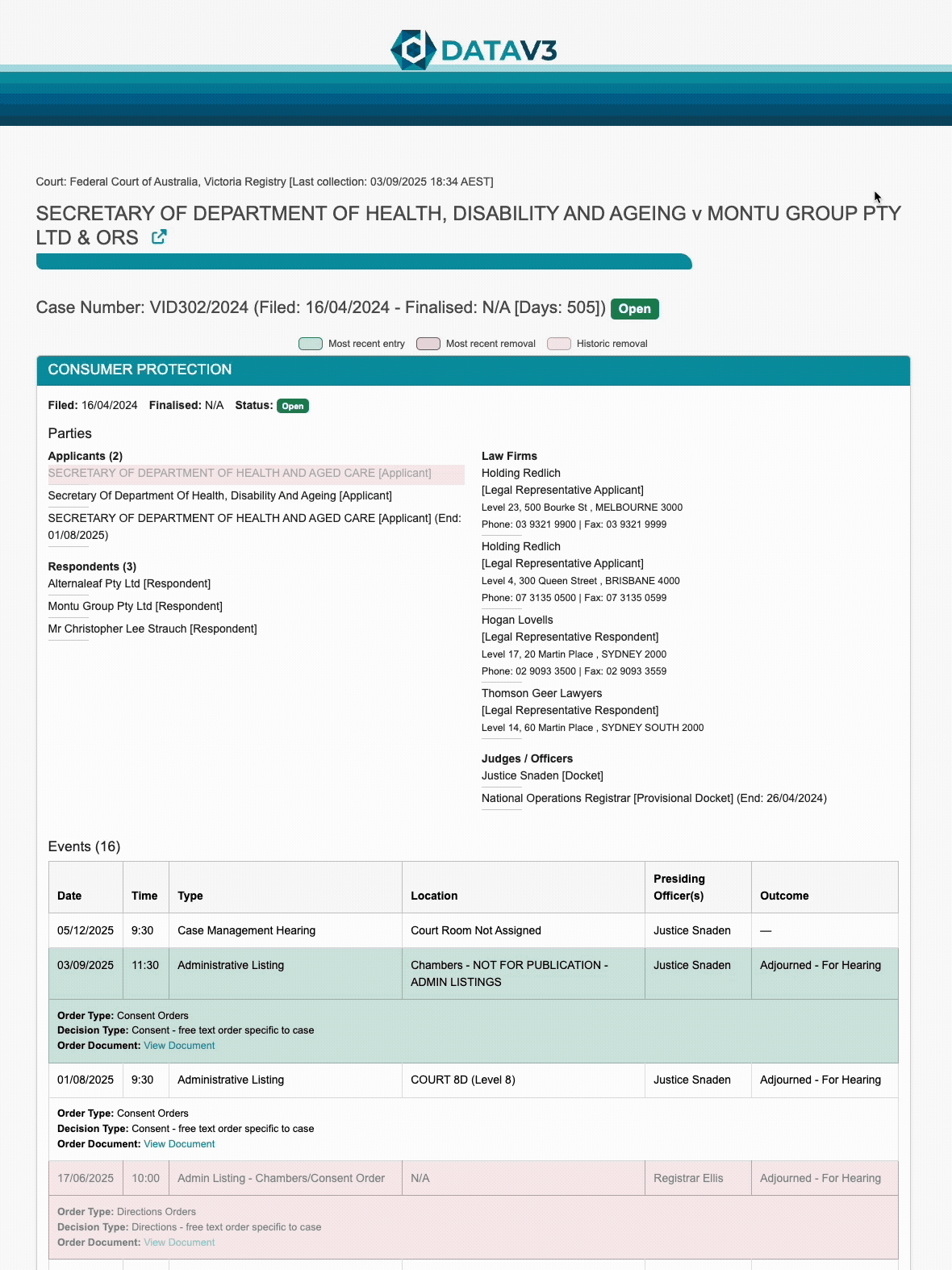 DATAV3 inspects the court record for you and displays it in a more user friendly way, with the most recent changes highlighted.